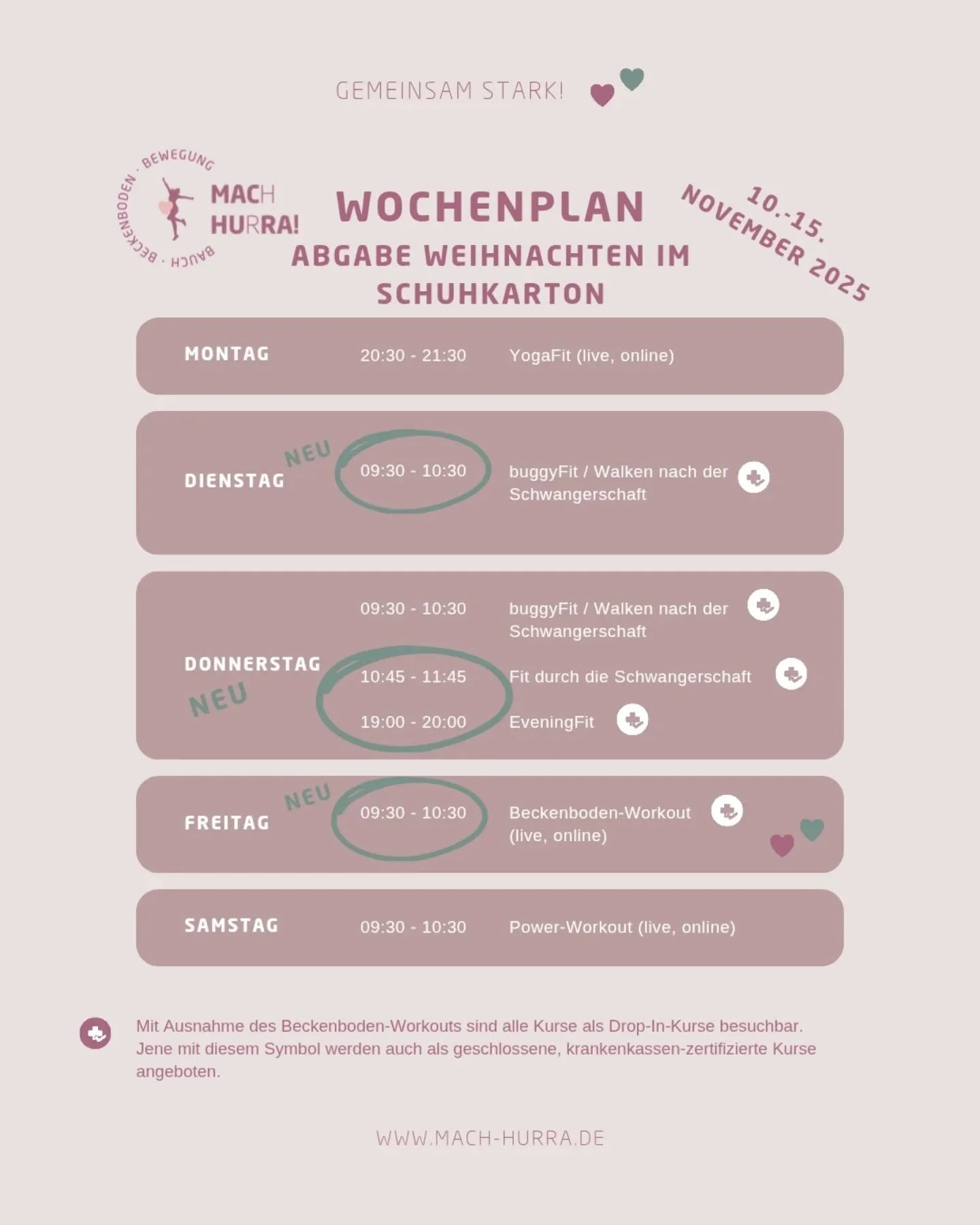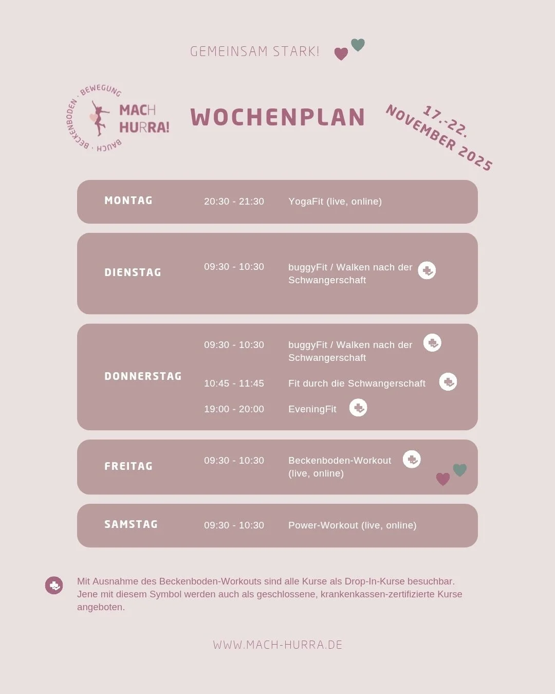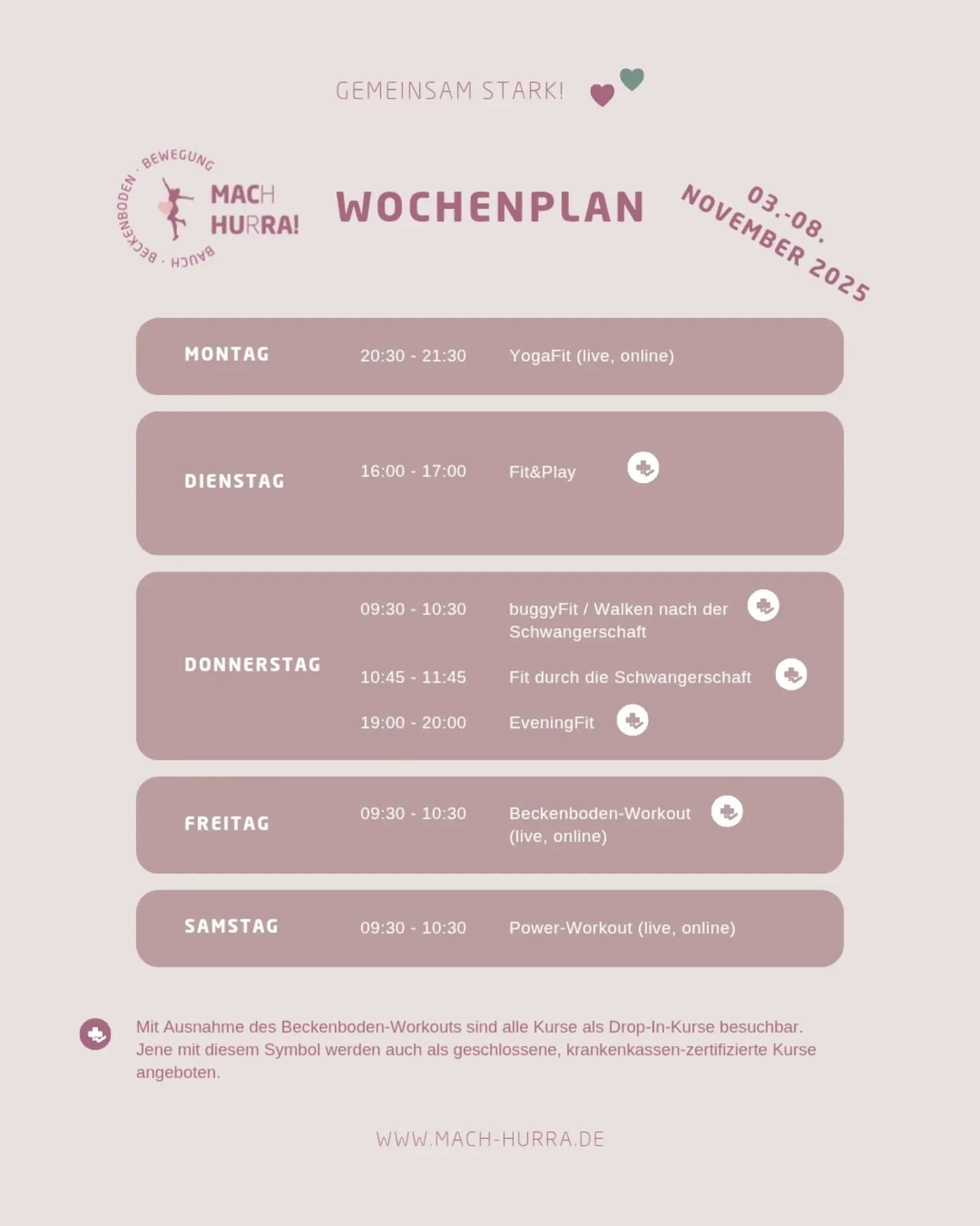 Egal, ob mit Babybauch, nach der Geburt oder als Nicht-Mama - wir haben den idealen Fitnesskurs für dich und deine Bedürfnisse. Mach mit. MACH HURRA!